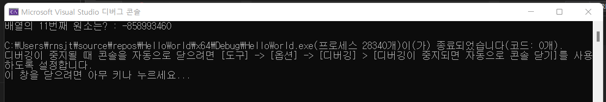 printf("배열의 11번째 원소는? : %d \n", arr[10]);