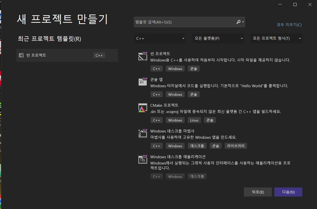 본인과 같은 초보자의 경우 일단 Desktop developmen with C++ 정도만 체크해도 될듯하다.