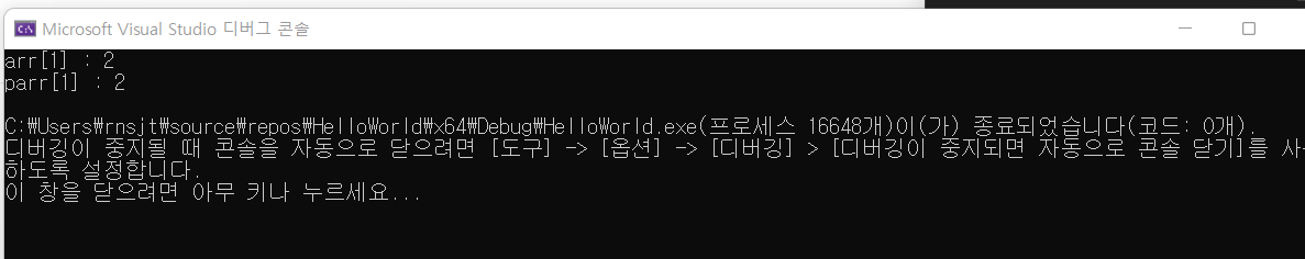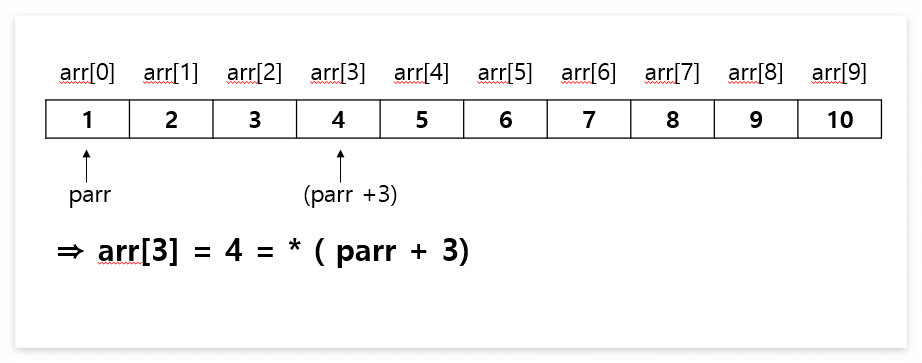 따라서 parr 을 통해 arr 을 이용했을 때와 동일한 방식으로 배열의 원소에 접근할 수 있게 된것이다.
