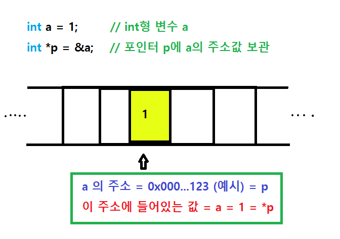 p = &a; // p 라는 포인터 변수에 a 의 주소값을 넣어주었다