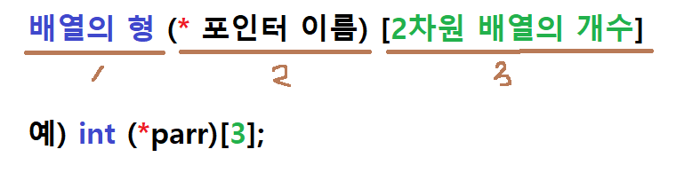 2차원 배열을 가리키는 포인터는 배열의 크기에 관한 정보가 있어야 한다.