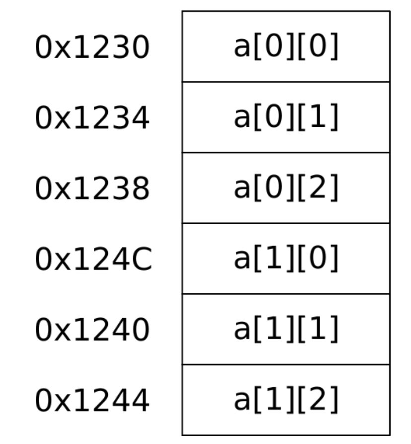 하지만 컴퓨터 메모리는 1차원 구조이기 때문에, 2차원배열이든 3차원 배열이든 사실 메모리 상에 선형적으로 존재한다.