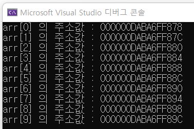 주소값이 4씩(int 형) 증가하는 것을 확인할 수 있다.