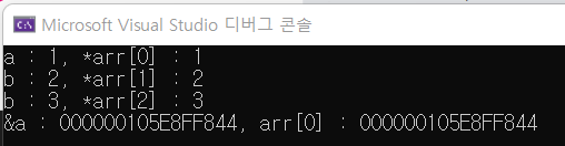 printf("b : %d, *arr[1] : %d \n", b, *arr[1]);