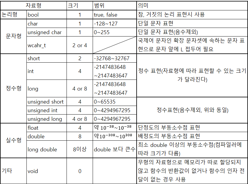 C++ 에서 기본적으로 제공하는 자료형 :