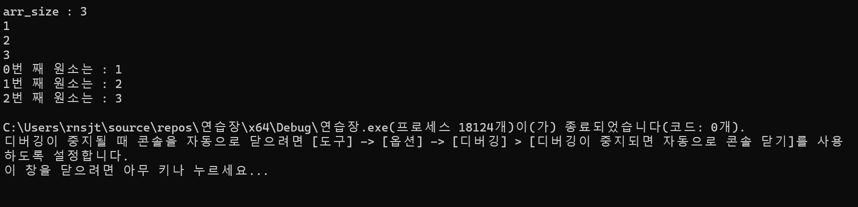 delete[] arr; // 할당한 메모리 해제 잊지 말기!