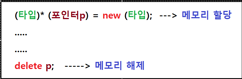 int* p = new int; // int 크기의 공간을 할당하여 그 주소값을 p 에 대입