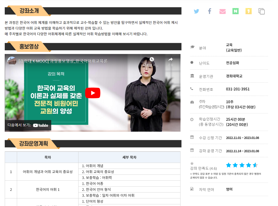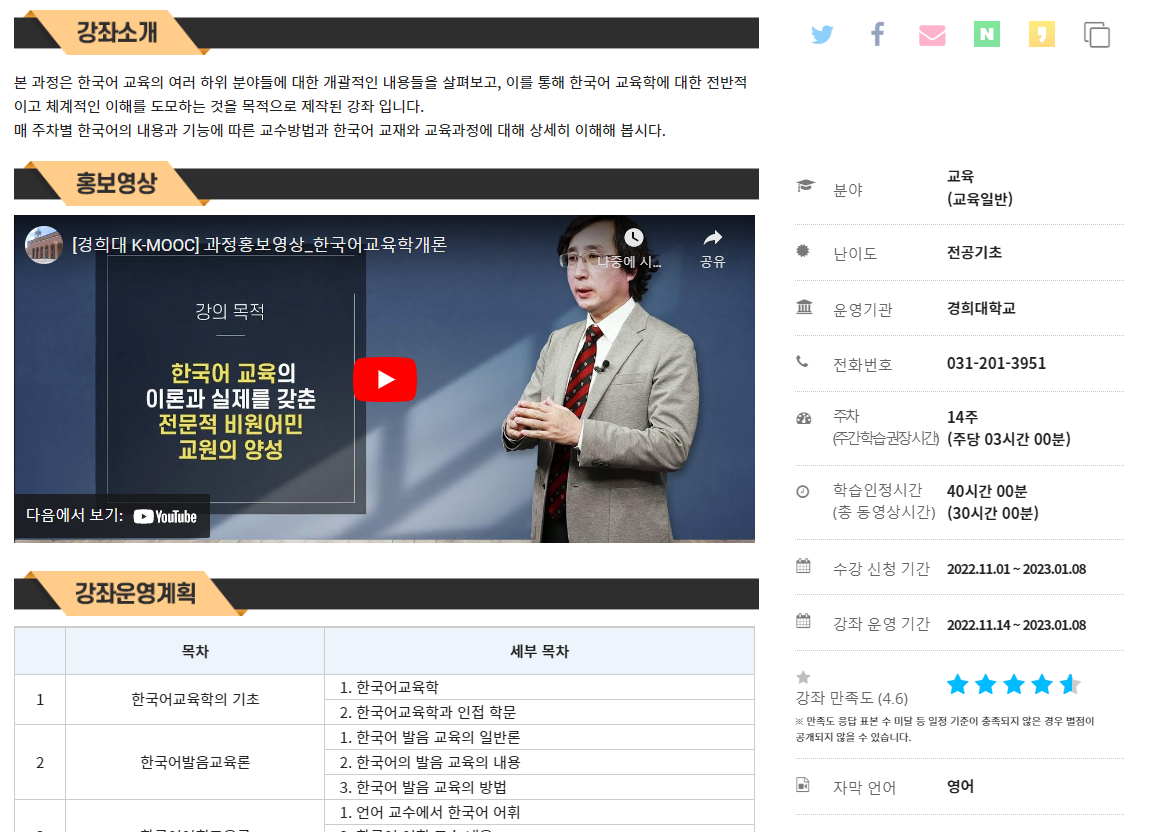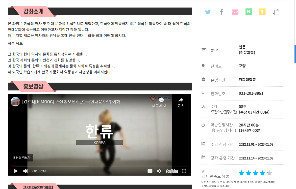 지금까지 경희 K-MOOC 3차 운영강좌들에 대해 간단히 살펴보았습니다.