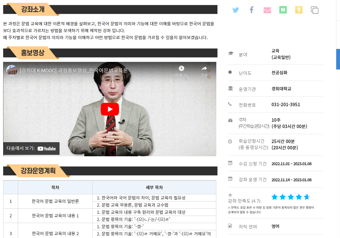 이 강좌를 통해 한국어 문법을 올바르게 익히고, 더 나아가 어떻게 한국어 문법 교육을 하는 것이 효과적인지 알아보셨으면 좋겠습니다 :)