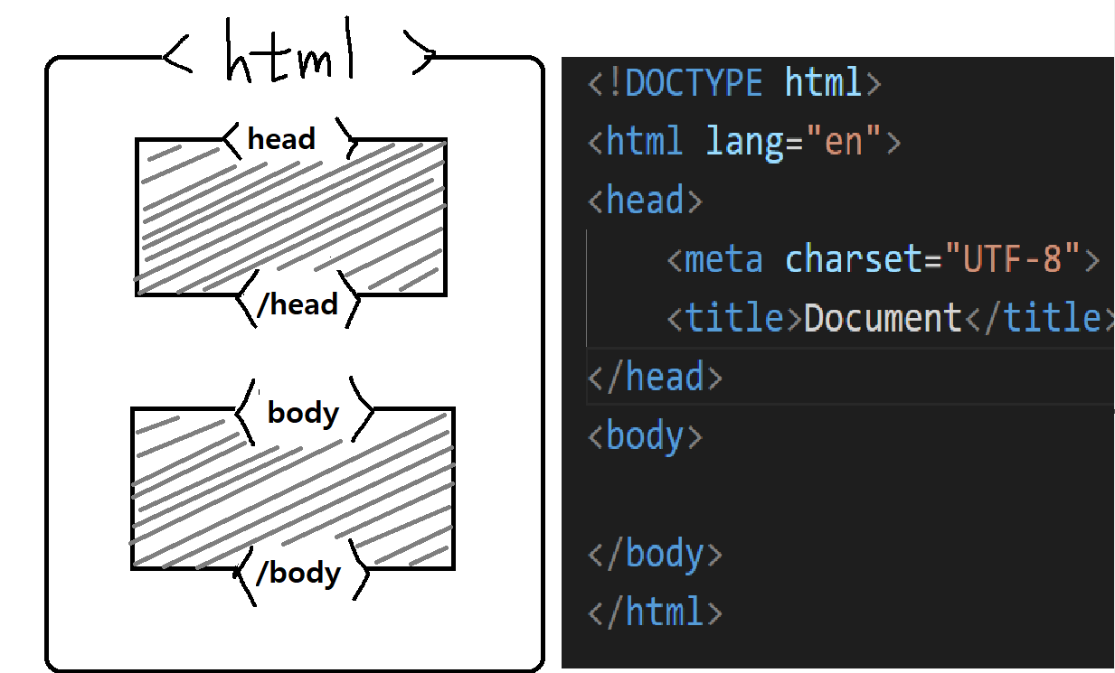 - 실제 문서 정보와 내용이 시작되고 끝나는 것을 표시하는 태그