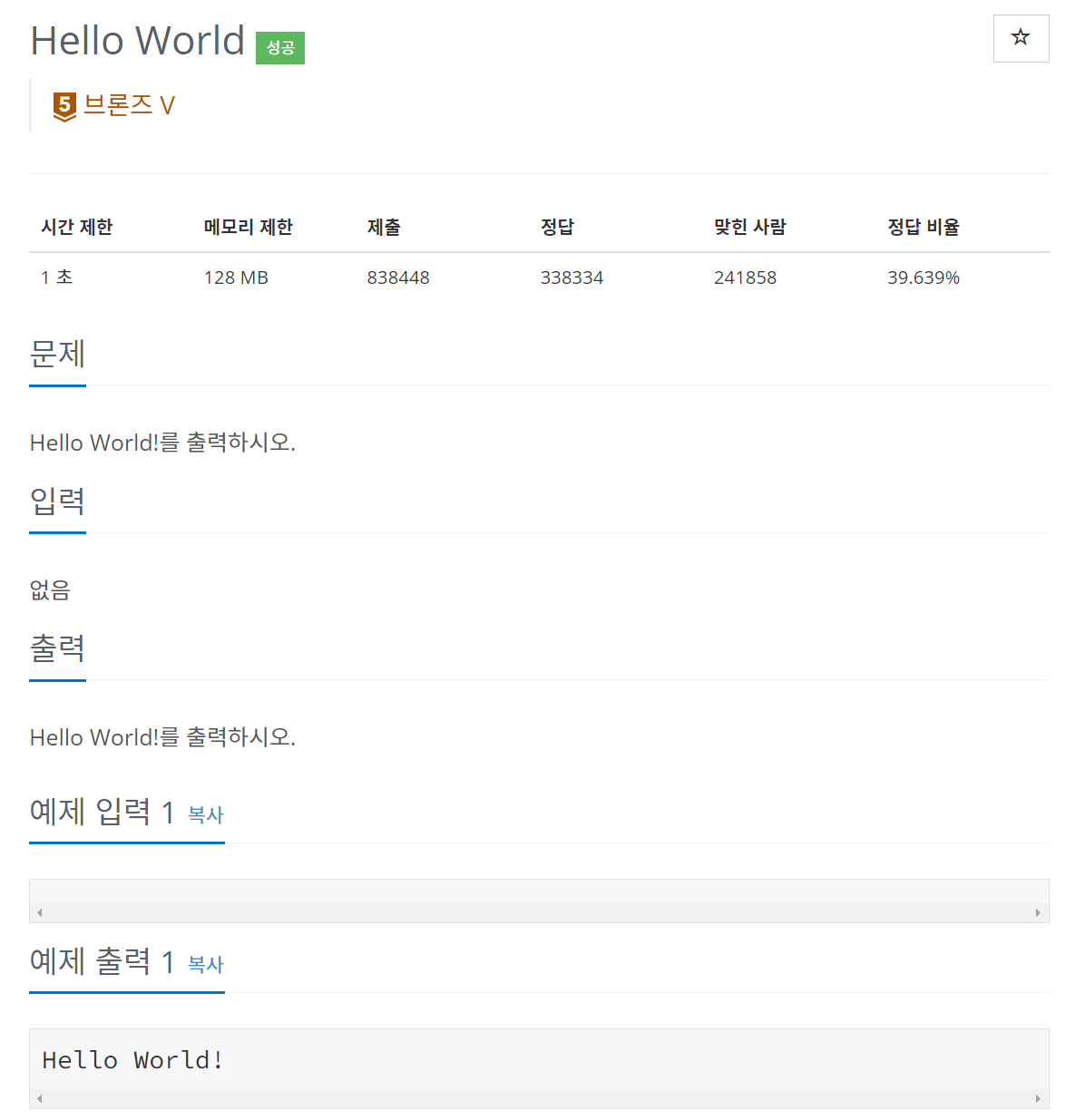 Hello World! 문자열을 출력하는 문제입니다.
