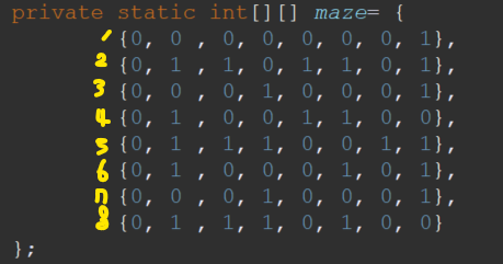 위와 같은 8x8배열 maze를 모양 그대로 출력하고 싶다면 어떻게 해야할까요?